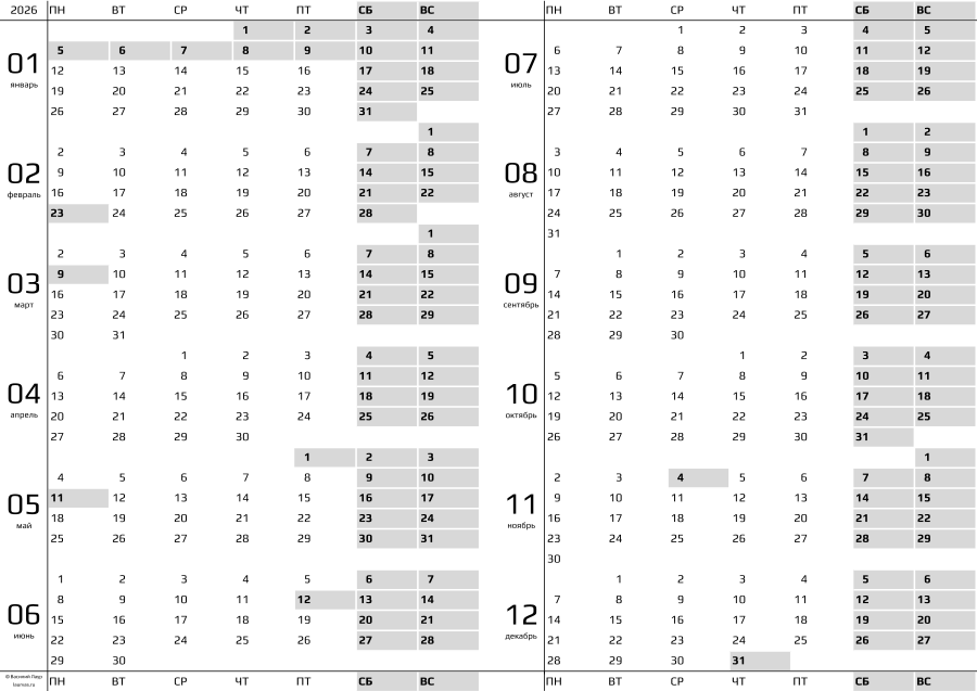 Скачать в pdf: версия на одном и на двух листах (по 6 месяцев).