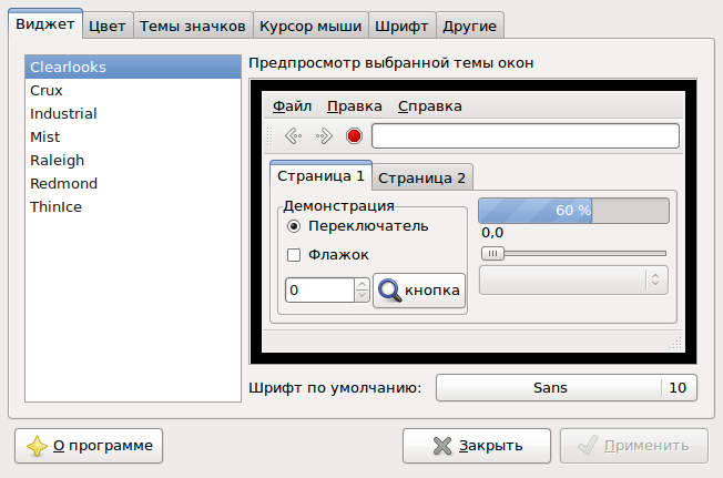 Обратите внимание, что тема отвечает только за внешнюю рамку окна и меню на рабочем столе. Внутренностями окна занимается библиотека GTK или QT. Для настройки GTK рекомендую утилиту lxappearance: