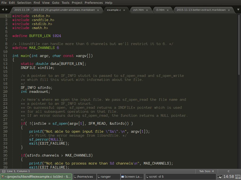 Почему я выбрал такие цвета? Именно такой серый цвет не отвлекает от работы, хорошо сочетается с редактором Sublime Text и дефолтным серым фоном. Хорошо читаются состояния задач, особенно активное окно.