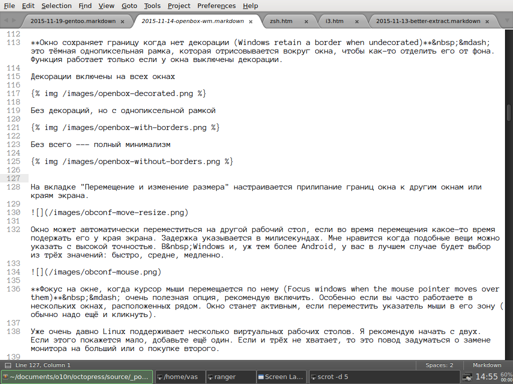 Эту статью я писал очень долго, и на момент публикации уже отказался от опенбокса в пользу i3. Но готов ответить на ваши вопросы в комментариях.
